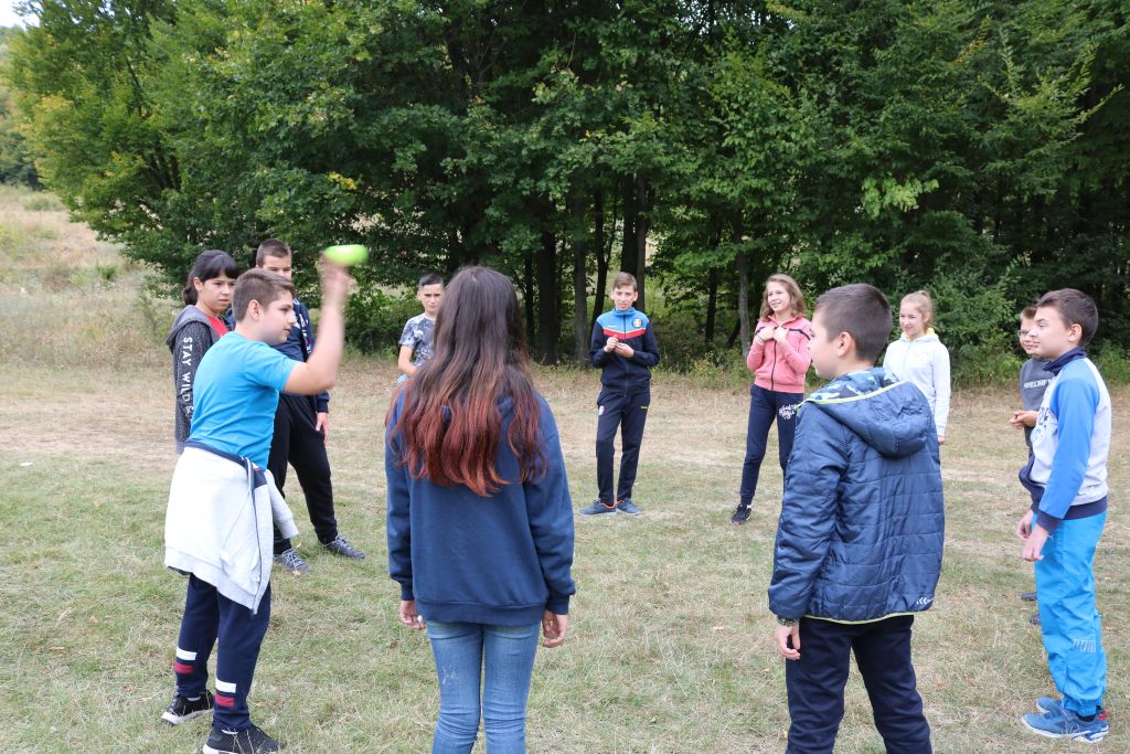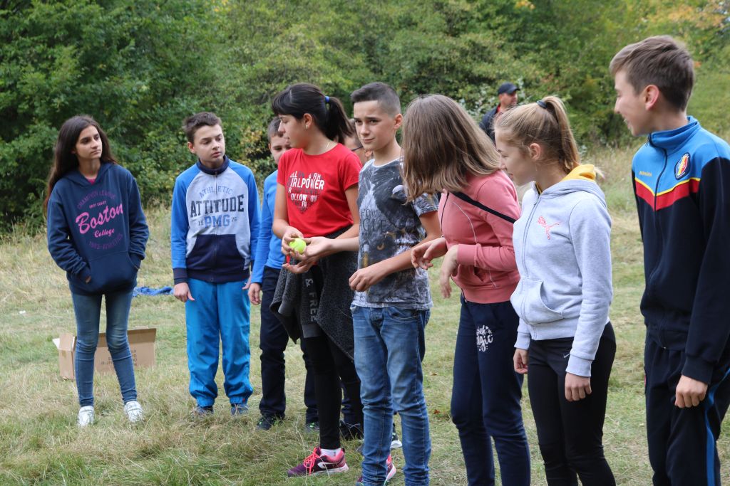 Pentru a le fixa mai bine informaţiile legate de habitatele, plantele şi speciile de animale specifice ariei naturale Lacul Negru, copiii au fost implicați în alt joc. Copiii trebuiau să arunce o minge de la unul la altul, să îşi spună prenumele şi o specie de animal sălbatic sau plantă a cărui denumire începe cu aceeaşi literă ca prenumele. La început, copiii se încurcau și găseau destul de greu variante de răspuns corecte, dar, prin exercițiu și perseverență, timpul necesar fiecărui elev pentru găsirea răspunsurilor s-a scurtat, iar variantele de răspuns oferite au fost din ce în ce mai numeroase și mai variate. Echipa a punctat cu această ocazie faptul că responsabilitatea protejării mediului înconjurător revine tuturor oamenilor, implicit, şi lor, de aceea elevii au fost mobilizați să manifeste o atitudine personală, responsabilă față de mediul în care trăiesc. După ce a fost realizat întregul circuit și fiecare dintre elevi și-a spus prenumele și specia corespunzătoare, pentru a crește gradul de dificultate al jocului, s-a reluat activitatea dar, de această data, elevii au fost nevoiți să-și spună numele și specia lor, dar și pe cea a celui care i-a transmis mingea. Astfel, jocul a devenit și mai interesant, elevii trebuind să fie atenți și la colegiilor, unii dintre ei au fost mai rapizi, alții s-au mai împotmolit, dar au fost susținuți și încurajați astfel încât, la finalul jocului, copiii au reținut cu precizie speciile de animale sau plante enumerate în timpul jocului și au înțeles responsabilitatea pe care o au oamenii în protejarea acestora și a habitatelor lor naturale.