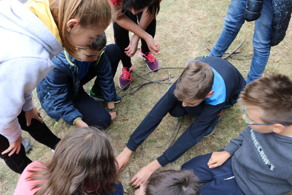 Pentru cel de-al doilea joc, copiilor li s-a propus recompunerea formei unui copac, având ca resurse materiale elemente din natură, fără ca utilizarea acestora să conducă la deteriorarea mediului (iarbă, frunze, fructe sălbatice şi ramuri căzute etc.). Cei 10 elevi participanți au adunat şi aranjat laolaltă diverse elemente vegetale care au alcătuit la final forma dorită, astfel le-au fost stimulate creativitatea, spiritul de echipă, organizarea eficientă şi rapiditatea în executarea sarcinii de lucru. Având în vedere că participanții la joc s-au descurcat atât de bine în realizarea acestei sarcini, echipa de proiect i-a provocat pe elevi să realizeze şi un instrument muzical tot prin utilizarea exclusivă a elementelor vegetale. Copiii s-au sfătuit şi au ales să creeze o liră ca instrument muzical. Prin acest joc, copiii au recunoscut că natura este un imens izvor de resurse pentru om, atât din punct de vedere material, cât şi pentru creația artistică, elementele vegetale fiind elemente specifice practicilor populare străvechi.