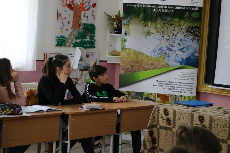 Tematica acestei prezentări a constat în informarea celor 20 de participanţi de către membrii echipei de implementare a proiectului privind biodiversitatea, conservarea acesteia, caracteristicile şi valoarea naturală a sitului de importanță comunitară Lacul Negru, importanţa şi valoarea proiectului în conservarea speciilor şi habitatelor din sit, precum şi ameninţările cu care se confruntă zi de zi mediul înconjurător şi responsabilitatea pe care o are omul de a-l proteja.
