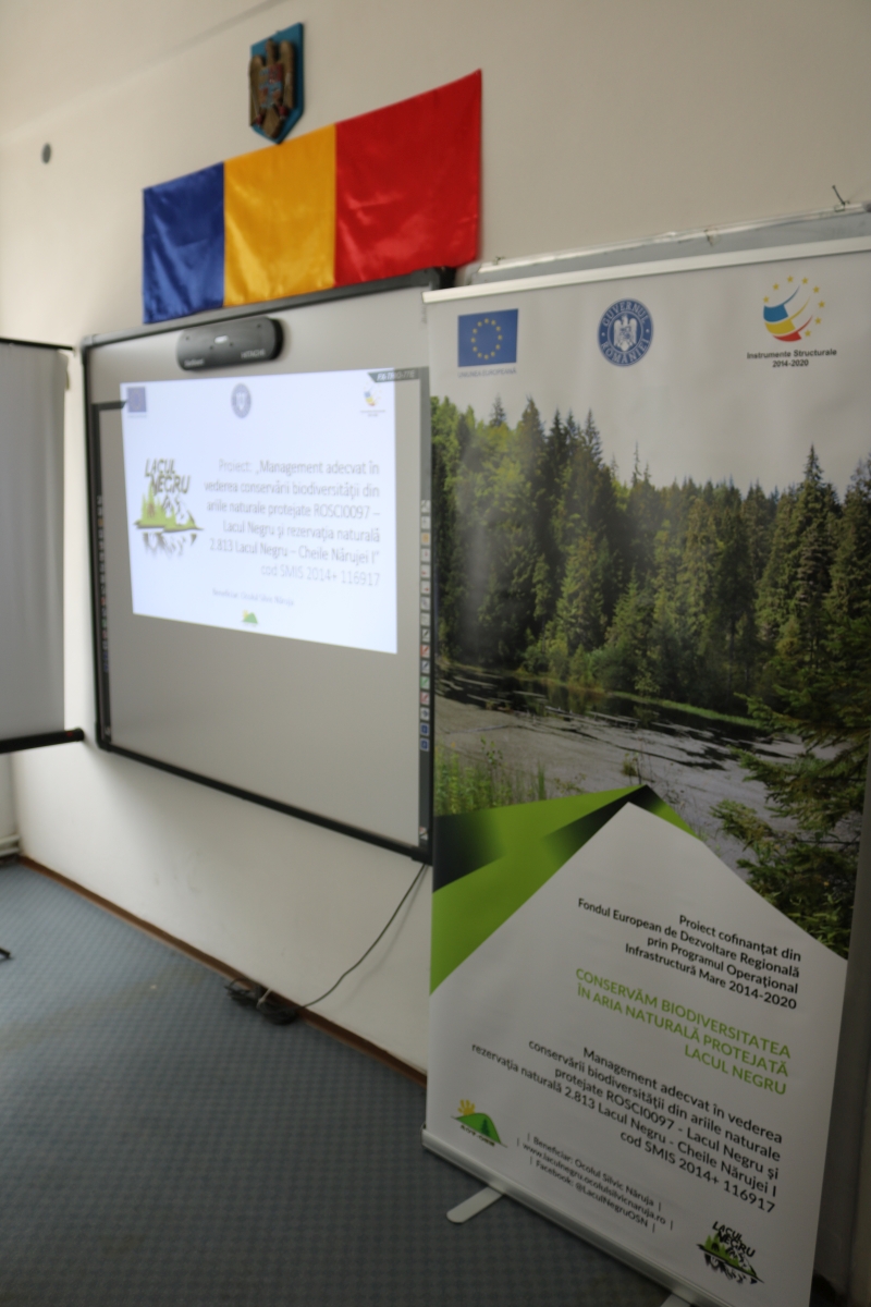 În debutul prezentării, elevilor li s-au prezentat informaţii sumare despre beneficiarul proiectului, Ocolul Silvic Năruja, precizându-se implicarea acestuia în proiecte şi activităţi de conservare a biodiversităţii în zonele în care acesta își desfășoară activitățile.